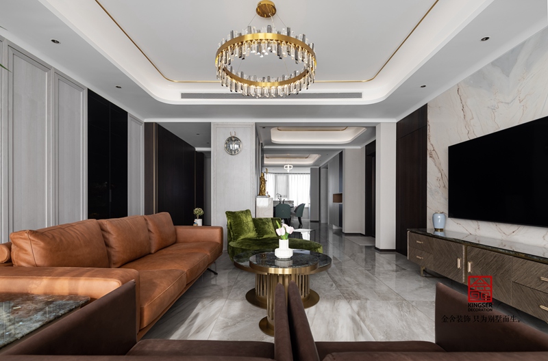 現代輕奢與當代東方的完美結合 硬包木作與奢石的極限混搭 塑造出渾然一體的家裝體驗