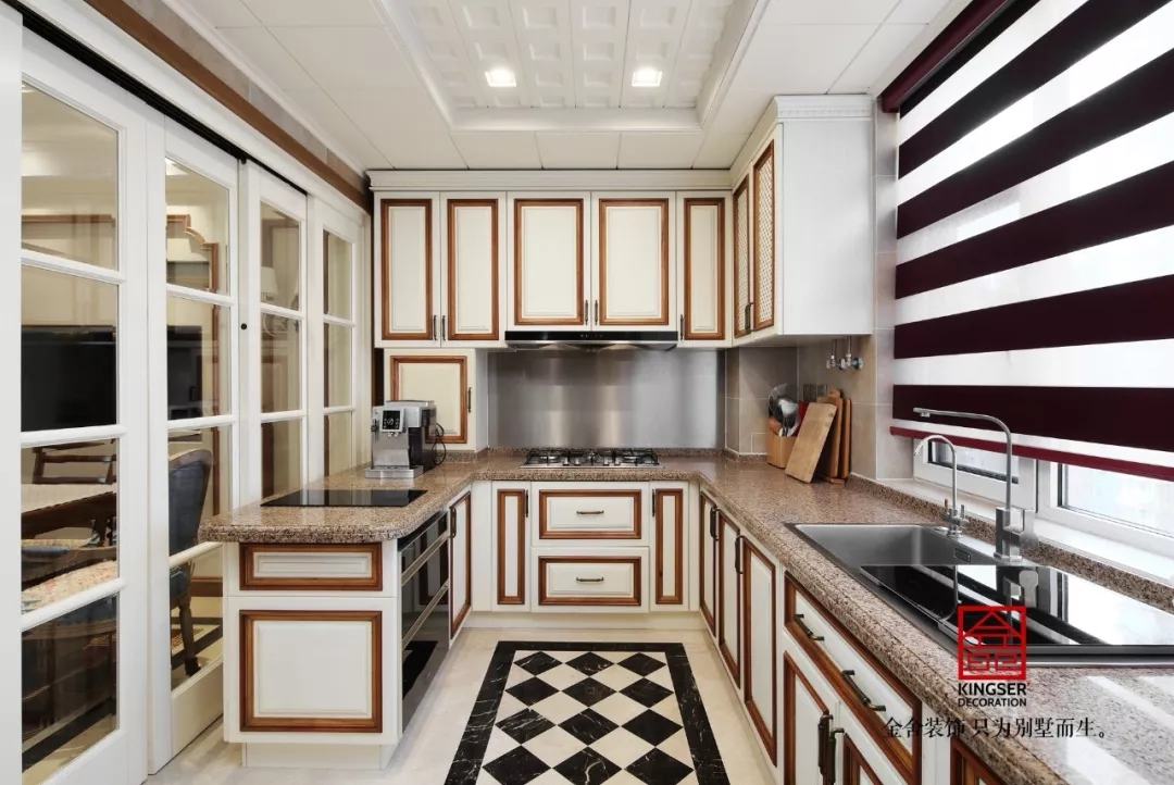櫥柜方面要注意材質與質量,櫥柜較為親水,臺面和柜體都要選擇防水的材質。臺面可以選擇石英石或大理石等石材鋼材面板,柜體就要選擇防潮板。五金配件和結構配件也需要進行質量鑒別,盡量選擇質量有保證的品牌,仔細挑選。