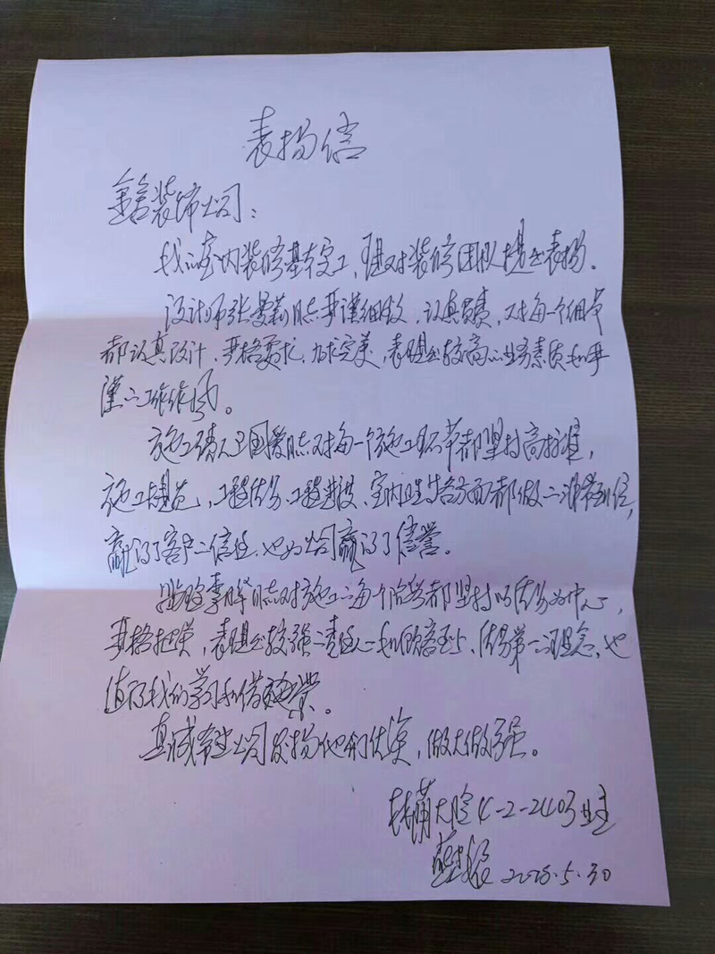 林蔭大院燕總致石家莊金舍裝修感謝信