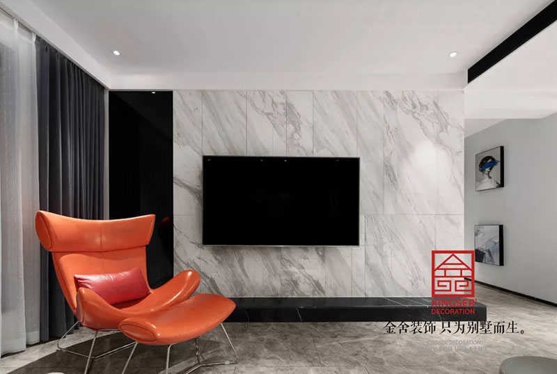 石家莊金舍裝飾-天山九峯175平米極簡風格裝修實景圖。極簡風格的美麗不光是一種快節奏生活中的剪影,也是一種特立獨行的生活方式,對于極簡人來說優雅也是一種生活態度。同樣對于推崇極簡風,推崇工業風的人來說,極簡風格就是一個極致的風向標。