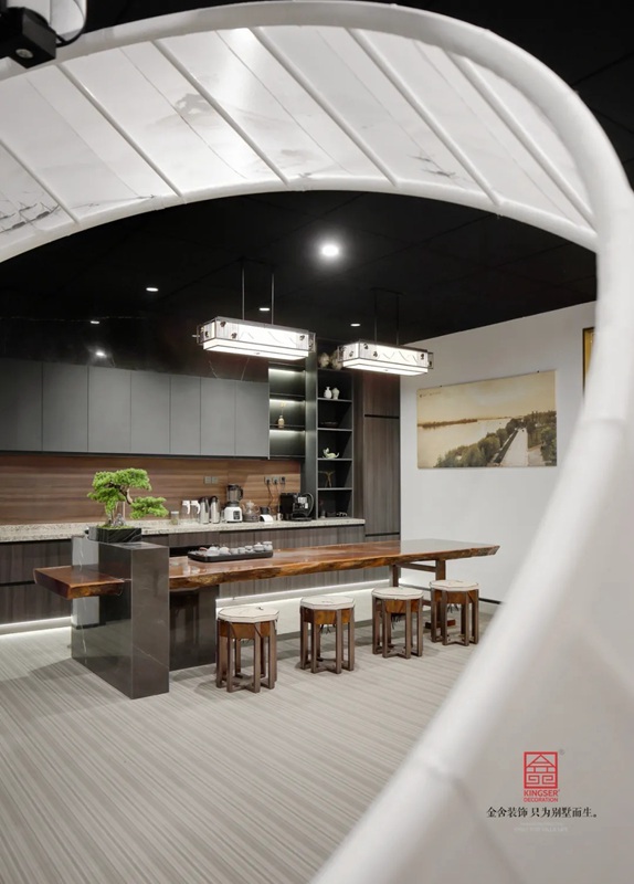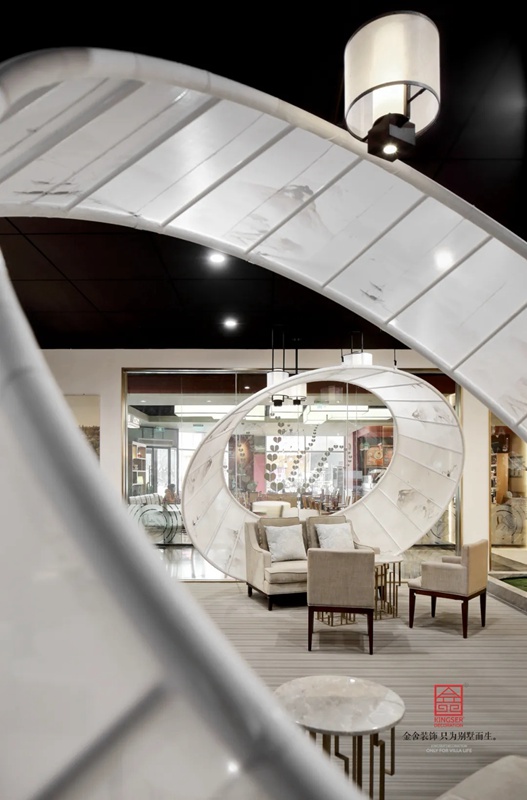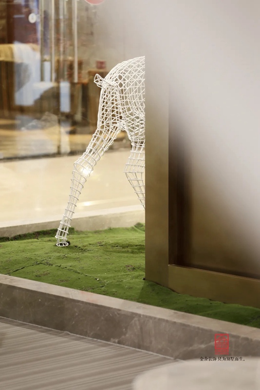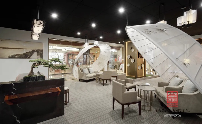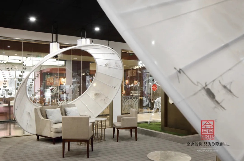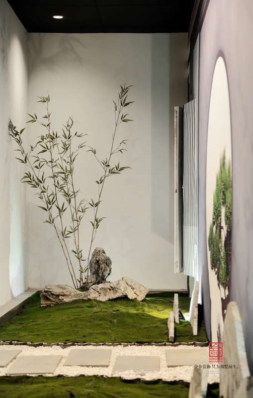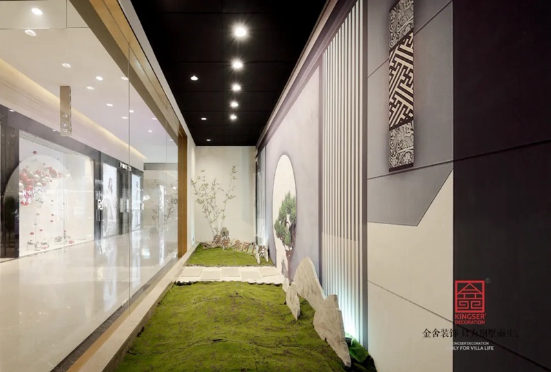 石家莊金舍裝飾-御河上院在商場的樓盤展示區(qū)裝修實(shí)景,在設(shè)計中將自然與人文的意象融入室內(nèi)設(shè)計,綠意盎然的自然景象以其深厚的文化底蘊(yùn)滋潤著人們的心靈,對自然的認(rèn)識和感悟,讓人豁然開朗,心曠神怡,也就成為中國傳統(tǒng)文化資產(chǎn)的傳承、轉(zhuǎn)譯與新生 。