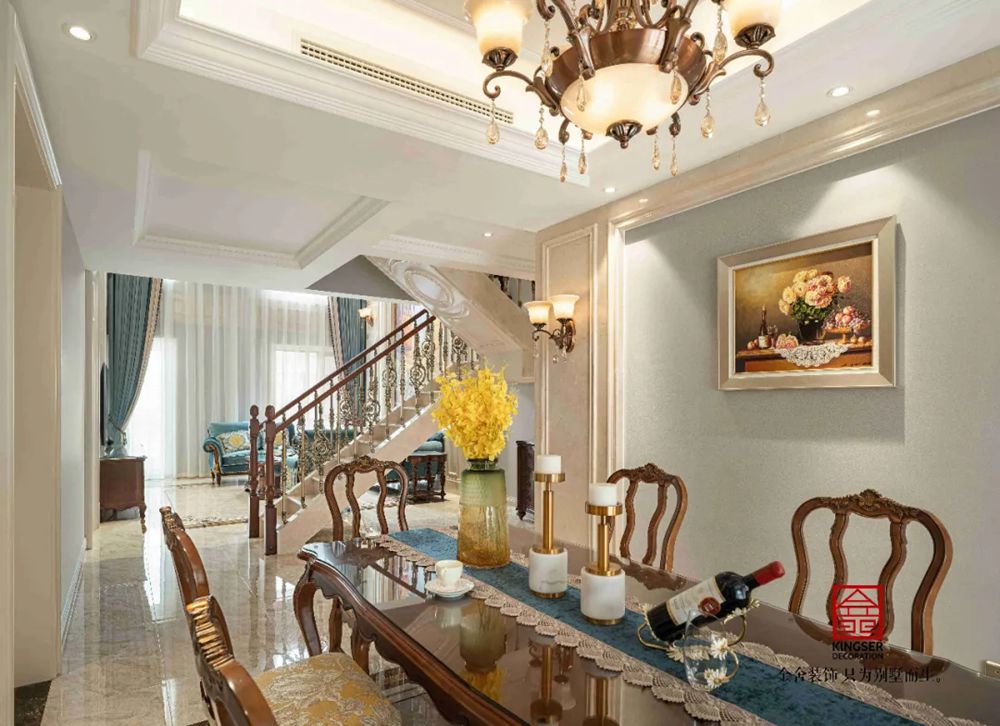 此案例為石家莊金舍裝飾-國際城300平米歐式風格裝修實景。生活于鋼筋水泥的叢林中,人們渴望質樸、休閑的家居環(huán)境。而歐式風格沿襲古典歐式風格的主元素,融入了現(xiàn)代的生活元素,使得居室有的不只是豪華大氣,更多的是愜意和浪漫。