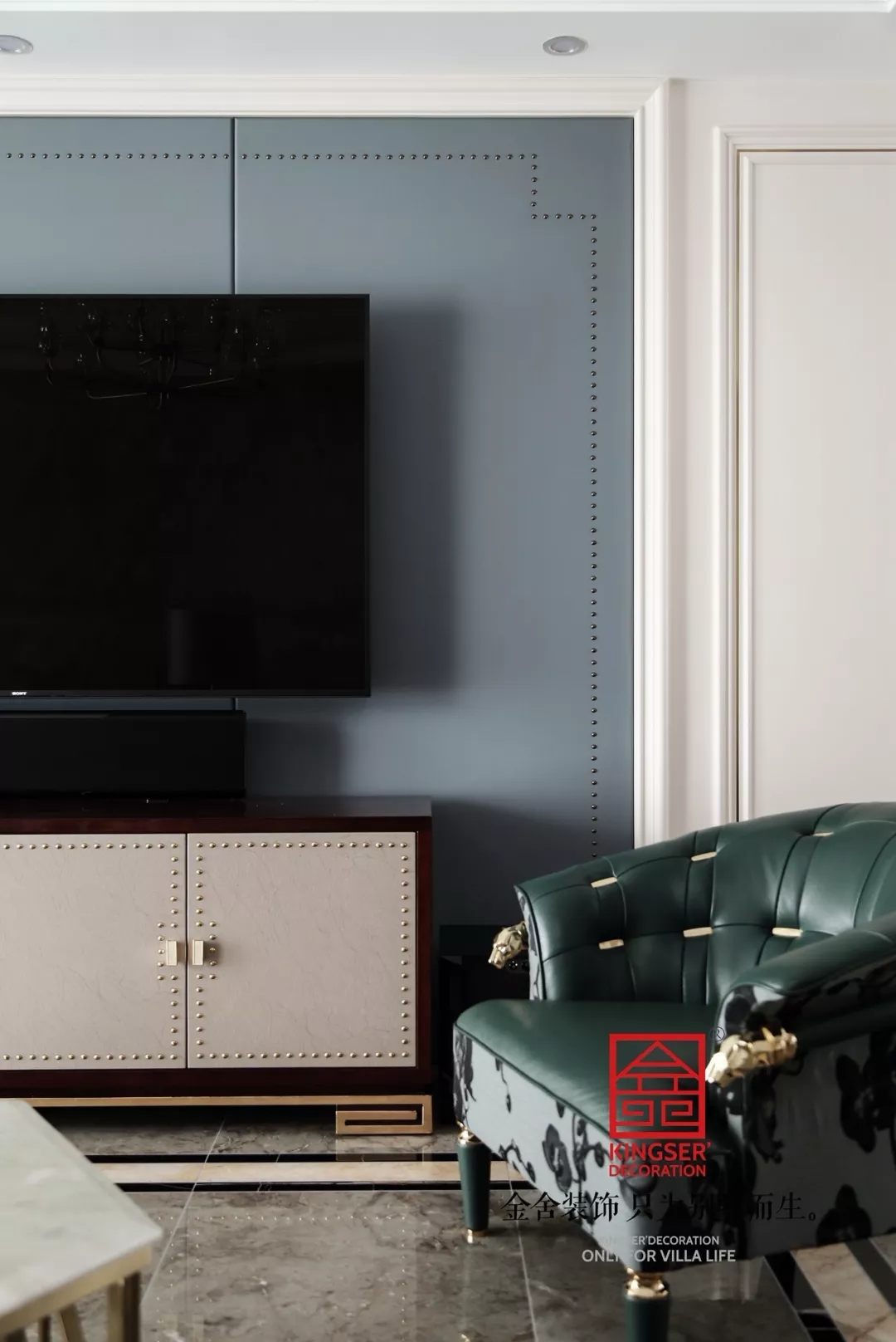 立于紛擾的世界,人們馬不停蹄的尋找獨(dú)屬自我的生活方式,空間成為了投射自我的一面鏡子。客廳中的事物就是一個(gè)個(gè)滿足生活需要的元素,因?yàn)橛兴麄兇嬖谖覀儾庞鞋F(xiàn)在的生活,一深一淺一素一濃的沙發(fā)在陽光下奕然生輝,融合多色調(diào)的綠色夾雜著自然紋路大理石,為整個(gè)空間創(chuàng)造出一種自然風(fēng)十足的環(huán)境。