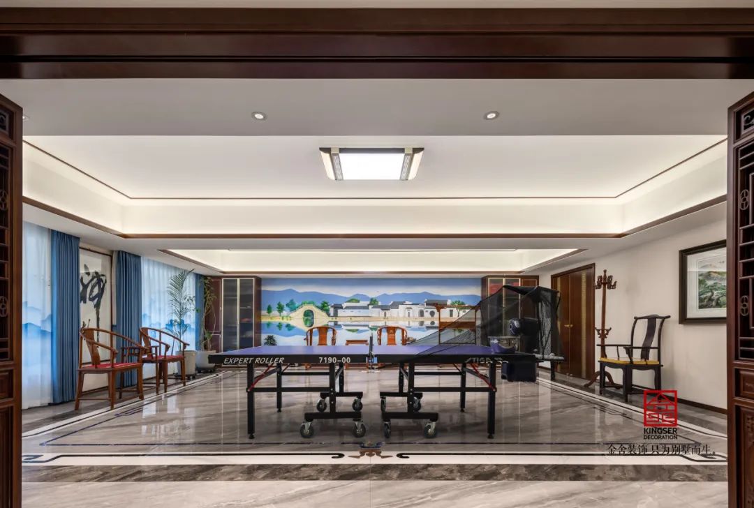 一個家居會所最不能缺少的就是娛樂的空間,乒乓球臺和影音室,晨沐朝霞、夜觀星斗,總有人想要脫開繁復的人事交集,體味中式元素之廣博。