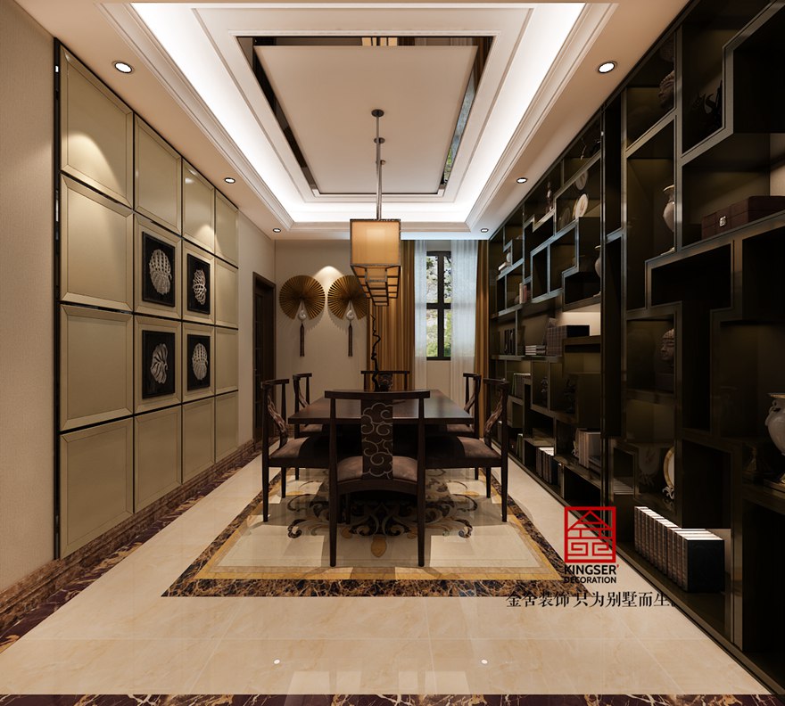 整個(gè)空間中,中式古韻與現(xiàn)代時(shí)尚相搭配,使人不覺運(yùn)用現(xiàn)代思維來細(xì)細(xì)玩味那番閑情逸致來