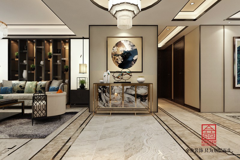 設(shè)計說明:此案例為石家莊金舍裝飾-保利拉菲公館172平米新中式風格裝修效果圖。業(yè)主是一個溫文爾雅的女士,講究假的溫暖,孩子的教育,燈光的功能性,在初步洽談的過程中,我與業(yè)主脾氣相投,專業(yè)性與責任感是不可少的,所以很快得到了業(yè)主的認可,在眾多的對比中達成共識。