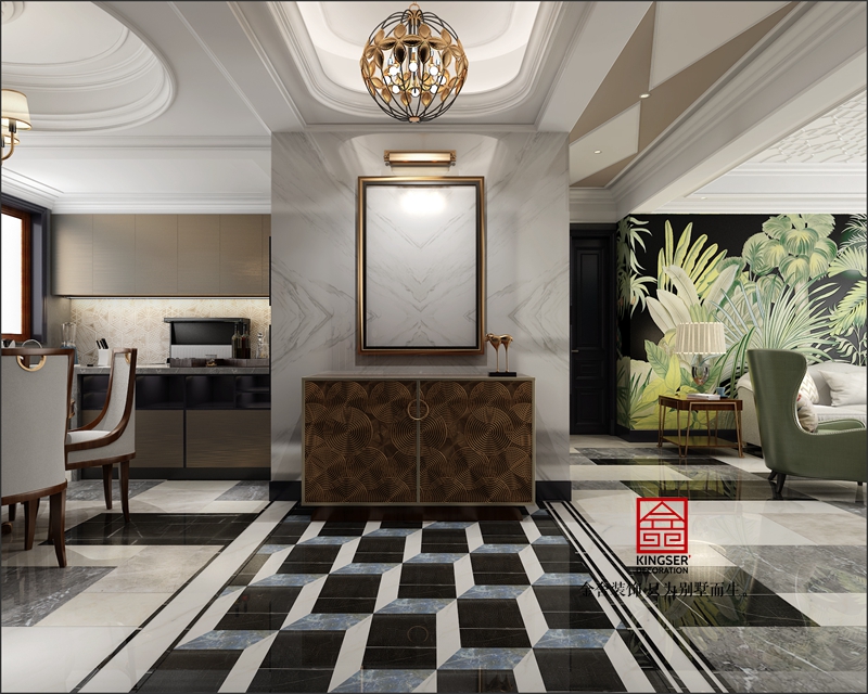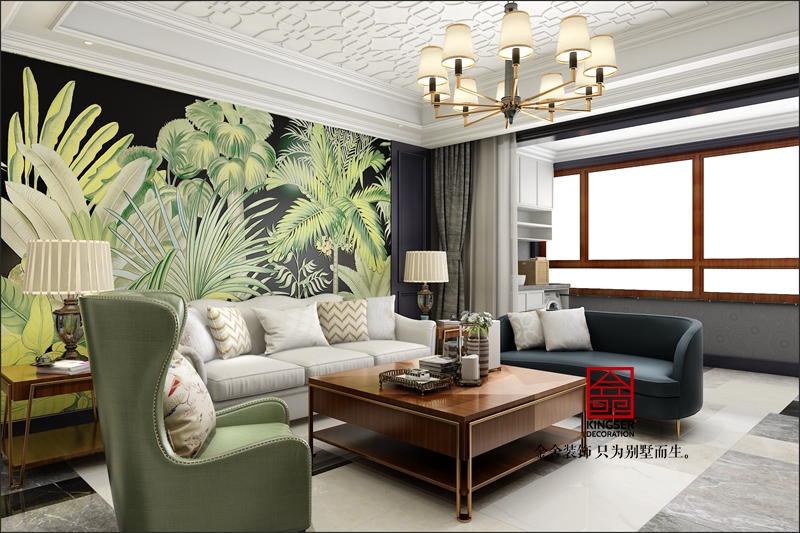 此案例為石家莊金舍裝飾-榮盛華府185平米美式風格裝修效果圖。生活中強調自由自在,隨意的不羈的生活方式,通過與業主的深入溝通,這正是業主想要的。本著輕裝修,重裝飾的原則,同時圍繞著業主對房子功能的要求,大膽又不失合理的對空間進行改造與功能劃分。在設計手法上,基于個性存于共性的設計理念,進而創新空間,在尋常家居格局里演繹經典,同時也完美的把握了空間設計中的造型。本案的設計重點是會客空間、門廳,餐廳的空間互通與交流。選用來自大自然的元素,整體舒雅的綠意,泛著高貴的清波,和著室內精煉的細節,柔軟而泛著詩意,彌漫在整個空間氛圍中,引領著另一種獨特的生活暢想。在整個獨特的空間渲染下,追憶生活的場景片段,沐浴著晨曦的光輝,自然中透著閑逸,生活亦是如此。忙碌的都市人,內心卻渴求平淡簡單的生活,那么這就是一處非常適合人居的寧靜幽美場所