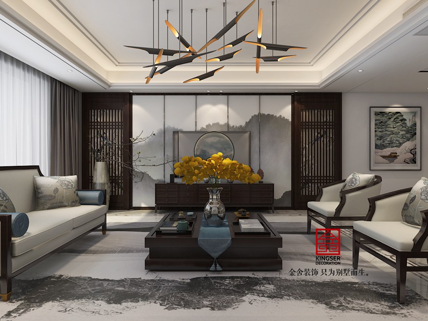 整體的色調以黑白灰為主,根據(jù)需求從新劃分功能空間,并參考了中式園林里面的造景手法,達到室內空間的“一步一景”