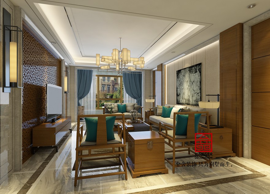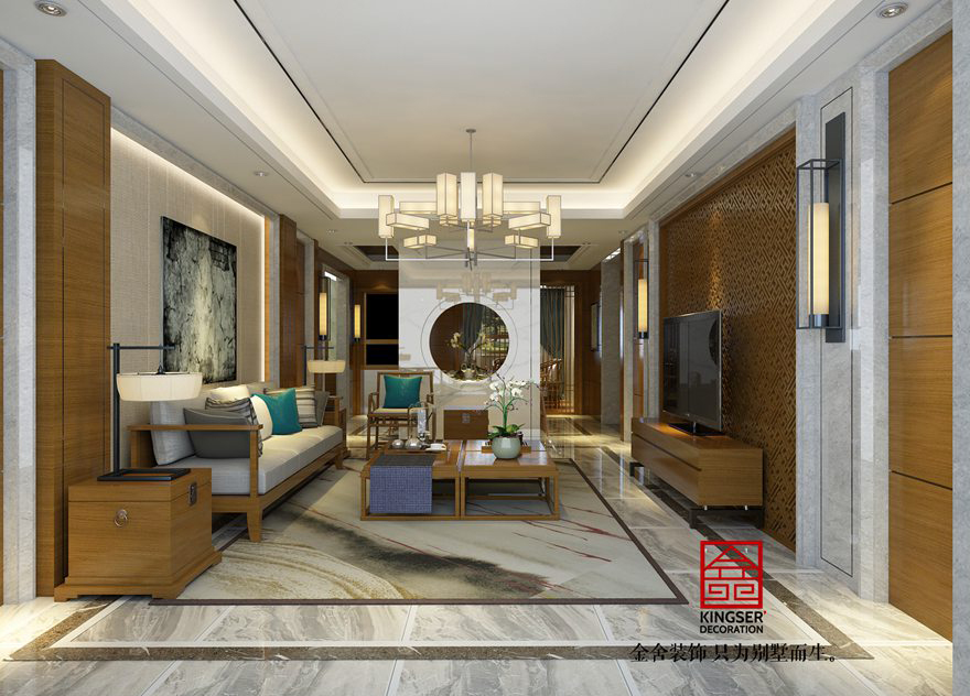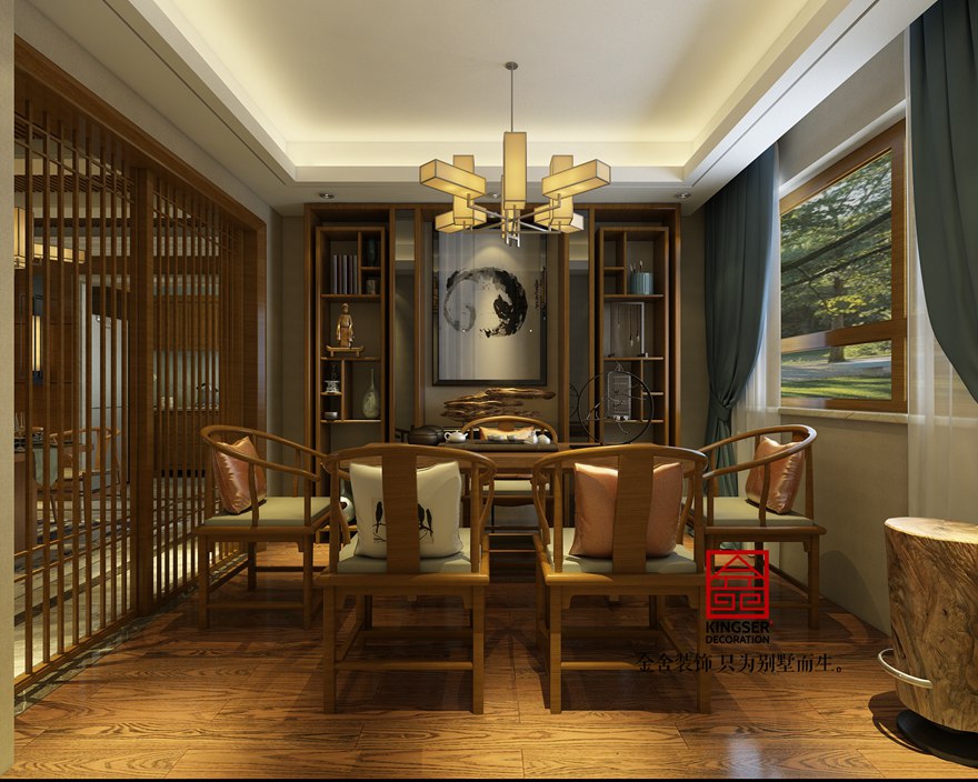 設計說明:此案例為石家莊金舍裝飾-御河上院255平米中式裝修效果圖。中式古典風格主要特征,是以木材為主要建材,充分發揮木材的物理性能,創造出獨特的木結構或穿斗式結構,講究構架制的原則,建筑構件規格化,重視橫向布局,利用庭院組織空間,用裝修構件分合空間,注重環境與建筑的協調,善于用環境創造氣氛。運用色彩裝飾手段,如彩畫、雕刻、書法和工藝美術、家具陳設等藝術手段來營造意境。