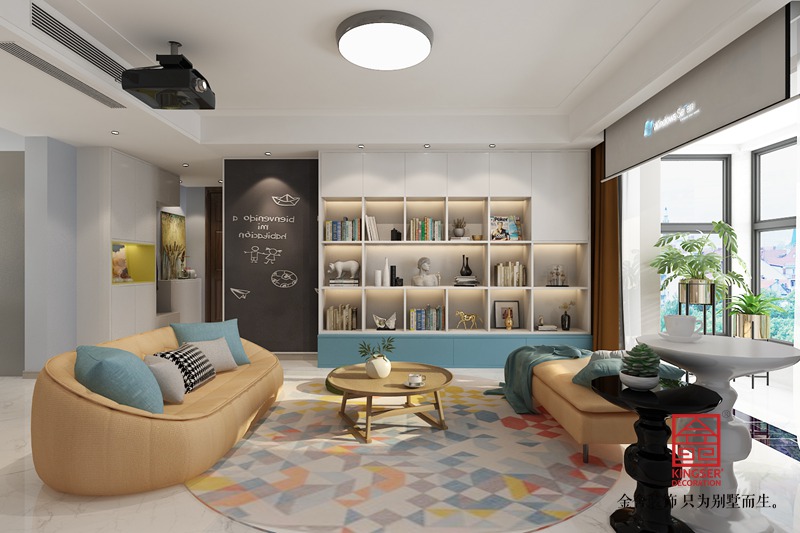 隨意的沙發擺放,可以一起坐著聊天可以和孩子一起做手工看書可以放下投影來看電影。更加符合年輕人的生活方式