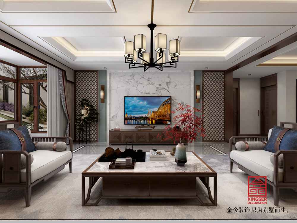 提取的是新中式的靜雅,現在都市社會,熱鬧的街市,徹夜的燈光,快節奏的工作環境,讓人不由想要一處安靜的地方撤下疲憊的外殼,好好放松一下。無論潮流如何變化,我們依然不可否認,充滿東方情調的靜謐居所,才是最能打動人心的。而時下流行的新中式風格,不但摒棄了過去的繁復雕飾、濃墨重彩,而且融入了更多現代人的審美眼光與追求,因而頗受當代年輕人的鐘愛。