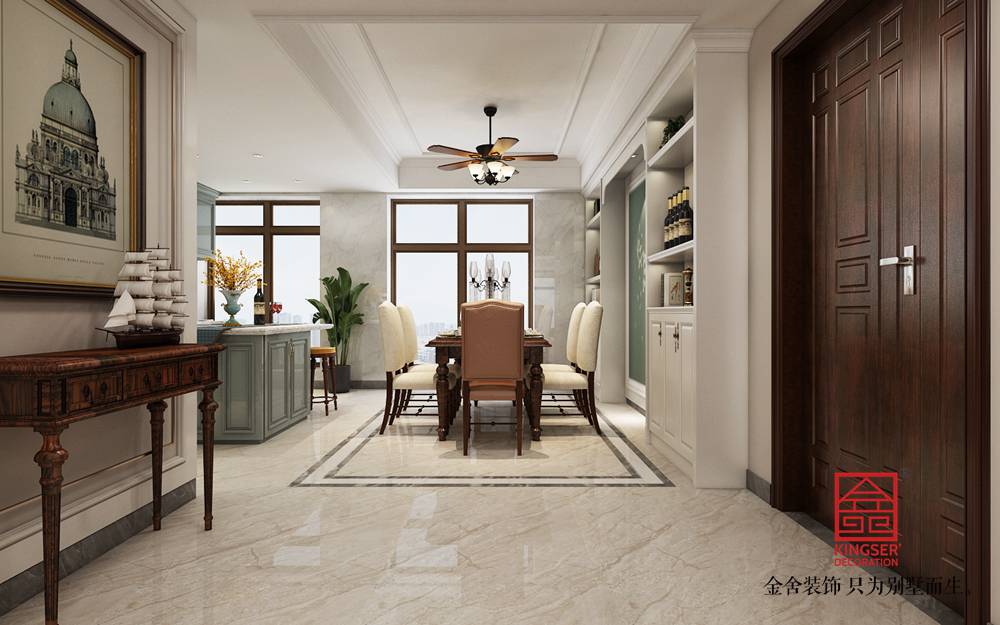 設(shè)計(jì)說(shuō)明:此案例為石家莊金舍裝飾-融創(chuàng)中心217平米簡(jiǎn)美風(fēng)格裝修效果圖。簡(jiǎn)美風(fēng)格即是簡(jiǎn)約美式風(fēng)格,客廳裝飾韻味既含有古典美式的華貴又有現(xiàn)代風(fēng)格的簡(jiǎn)約,運(yùn)用清亮的色彩,從硬裝到軟裝追求空間的干凈與利落,不做復(fù)雜的空間布局,讓室內(nèi)充滿溫馨和舒適的感覺(jué),帶給人休閑式的浪漫生活,餐廳基本上都與廚房相連,廚房的面積較大,操作方便、功能強(qiáng)大,廚房的多功能還體現(xiàn)在家庭內(nèi)部的人際交流多在這里進(jìn)行,這兩個(gè)區(qū)域會(huì)同起居室連成一個(gè)大區(qū)域,成為家庭生活的重心。