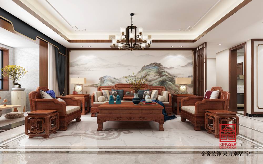 設(shè)計(jì)說明:本案為石家莊金舍裝飾-維多利亞三期166平米中式風(fēng)格裝修效果圖。風(fēng)格定義為中式風(fēng)格,中式風(fēng)格非常講究空間的層次感,在需要隔絕視線的地方,則使用中式的屏風(fēng)、中式木門、工藝隔斷、簡約化的中式“博古架”,通過這種新的分隔方式,展現(xiàn)出中式家居的層次之美,客餐廳空間添加了中式山水畫祥云圖案元素,使整體空間感覺更加豐富,大而不空、厚而不重,有格調(diào)又不顯壓抑。
