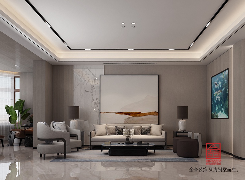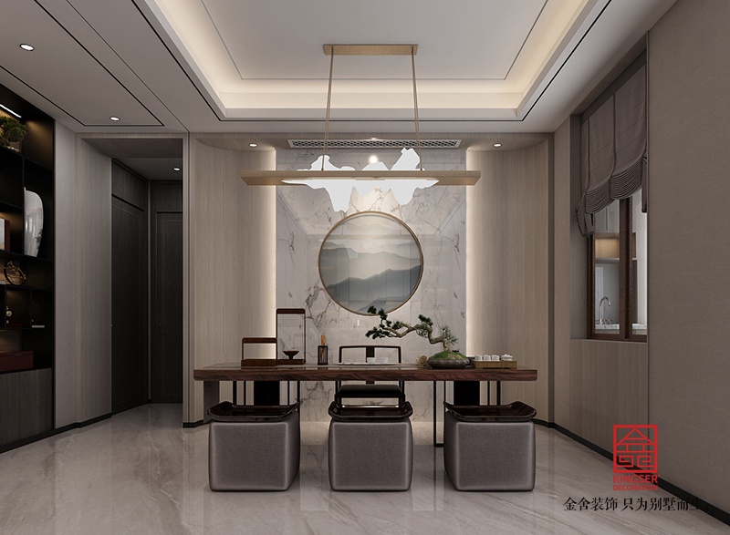 此案例為石家莊金舍裝飾-榮盛華府205平米中式輕奢裝修效果圖。
