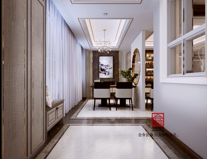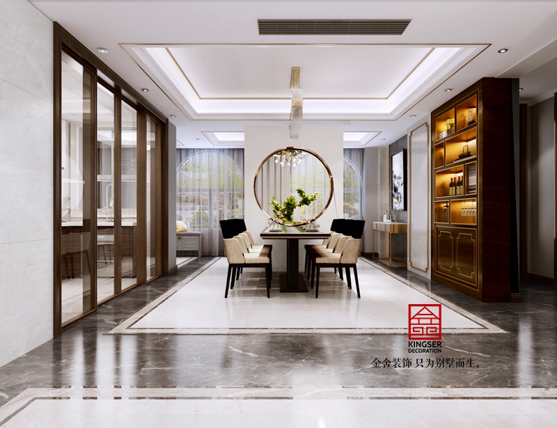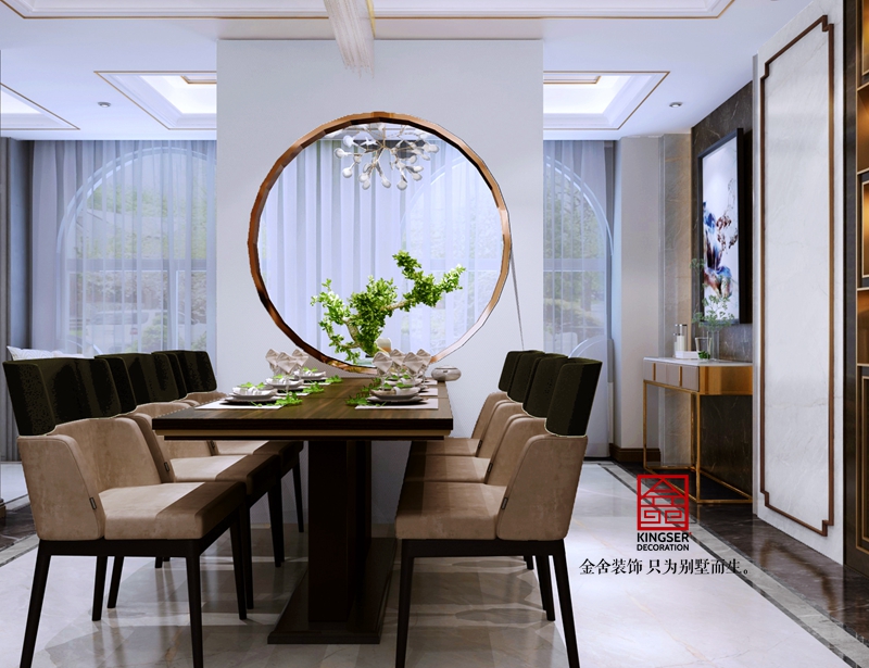 與傳統的表現禪意的手法不同的是,此次在材質的選擇上,摒棄了常用的低反光、粗樸質感的材料,而使用較為細膩、縝密的木及金屬等等。空間的整體氣質顯得更為精致與高貴。