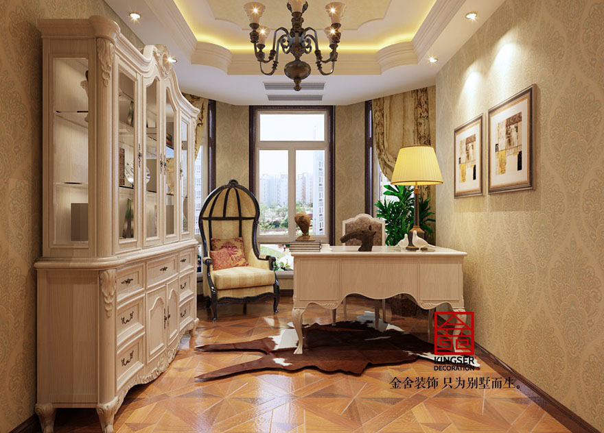 設計說明:此案例為石家莊金舍裝飾-江南新城300平米歐式風格裝修效果圖。風格定位是歐式風格,歐式風格裝修有的不只是豪華大氣,更多的是意境和浪漫。通過完美的曲線,精益求精的細節處理,帶給家人不盡的舒適觸感,實際上和諧是歐式風格的最高境界。歐式風格的裝修更注重優雅氣質,能夠將歐式風格的繁復與復古風格的奢華完美溝通。本案設計注重裝飾效果,用室內陳設品來增強文脈特色,運用家具及陳設品來烘托室內環境氣氛。白色、黃色是此設計的主色調,少量白色糅合,使色彩看起來明亮。