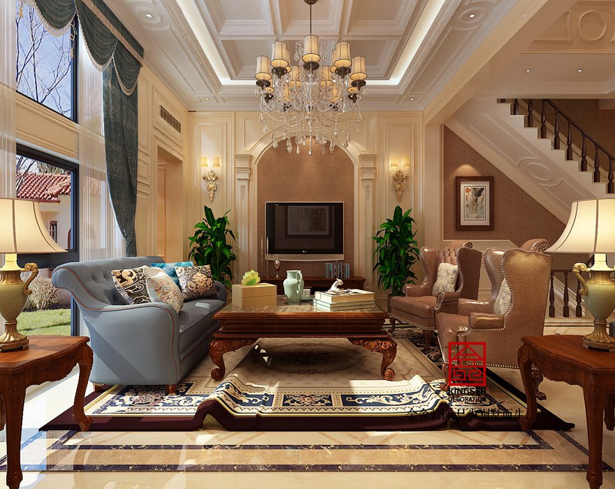 設計說明:此案例為石家莊別墅裝修設計公司-藍郡300平別墅歐式裝修效果圖。年輕人比較喜歡用鋼制材料配飾來裝點空間,但這與講求繁復雍容的歐式裝修風格來說確是“水火難容”的。這些元素對于歐式風格空間簡直可以說是毀滅性的的打擊。總之歐式風格的重點在于給觀者帶來一種略顯沉重的古典文化氣息,金屬感十足的元素盡量要避免。