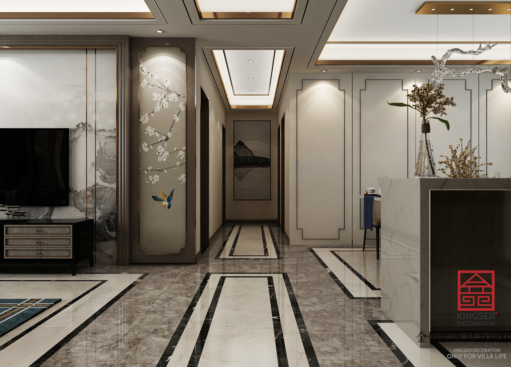 此案例為石家莊金舍裝飾-翰林甲第154平米新中式風(fēng)格裝修效果圖。