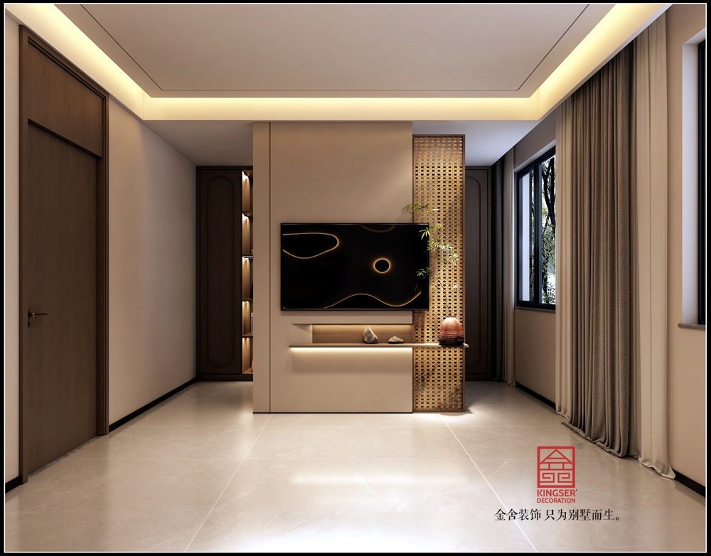 本方案聚焦新中式客廳設計,以傳承與創(chuàng)新為核心思路。空間摒棄繁雜造型,借簡約線條勾勒框架,淺棕、米白等低飽和色調(diào)鋪陳,營造溫潤、舒緩氛圍,契合現(xiàn)代人居對寧靜感的追求。