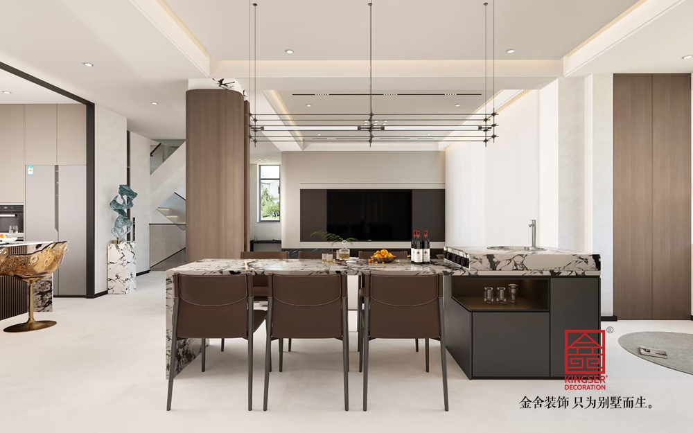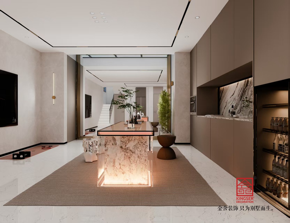 設計說明:該客廳以 “極簡美學與輕奢質感的共生” 為設計理念,從空間布局、材質運用到細節塑造,展現出別墅生活的雅致與舒適。