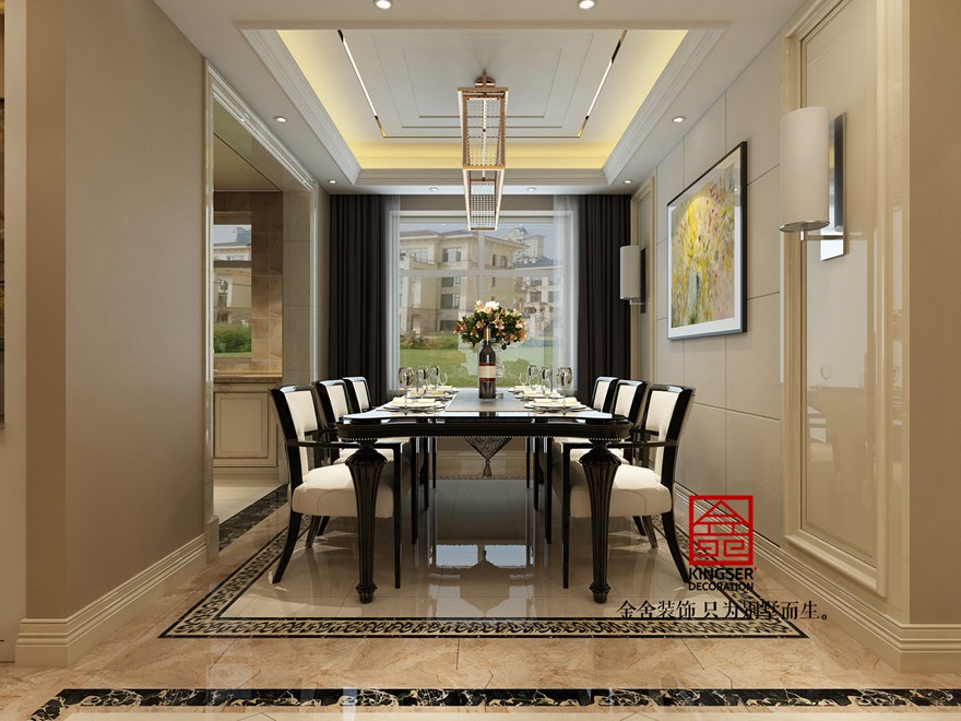 設(shè)計說明:此案例為石家莊金舍裝飾-中冶德賢公館160平米簡歐風(fēng)格裝修效果圖。簡歐風(fēng)格從簡單到繁雜、從整體到局部,精雕細(xì)琢,鑲花刻金都給人一絲不茍的印象。一方面保留了材質(zhì)、色彩的大致風(fēng)格,仍然可以很強烈地感受傳統(tǒng)的歷史痕跡與渾厚的文化底蘊,同時又摒棄了過于復(fù)雜的肌理和裝飾,簡化了線條。但綜合上而言就是結(jié)構(gòu)上的對稱性,造型上多以圓和方為主,裝修材料多以精細(xì)和貴氣為主。